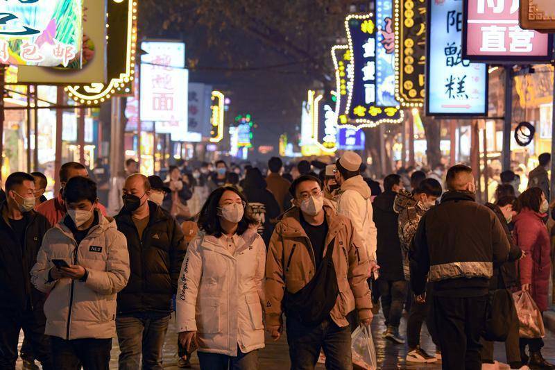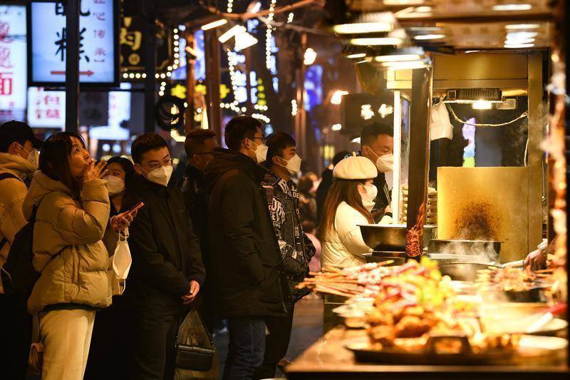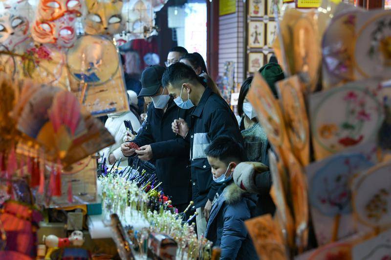 1月10日,市民游客在北院门历史文化街区选购美食。连日来,西安北院门历史文化街区灯火辉煌、人头攒动,沿街小贩的叫卖声不绝于耳,市民游客在这里品美食、逛夜市,一片热闹景象。